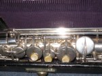 Well, as you can image, playing in concert pitch is odd for most saxophonists, since we have Bb or Eb keys etched into the left hand sides of our brains. It’s even weirder trying to pitch this instrument for an occasional soprano player like me. In any case this is fun – it doesn’t suffer from the strangulation pea-shooter qualities of most of the C Melody saxes I’ve tried. The tone is clear and the fingering easy – especially on the ‘pinky’ keys, which are smooth and responsive. I’ve included a link to a video so you can hear the potential, although I know it will sound a good deal better in the hands of a good soprano player. I haven’t yet practiced with the horn enough to use it in a band. I’ll report back if and when that happens.