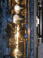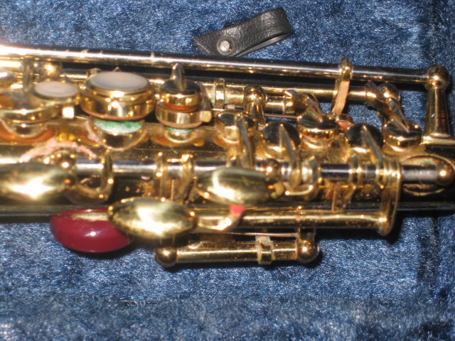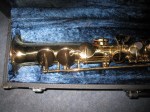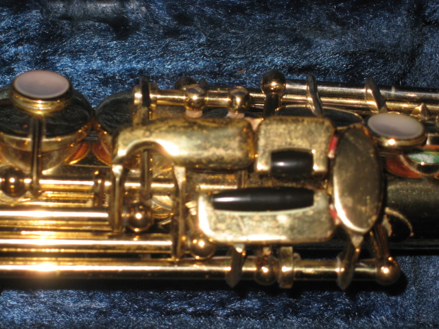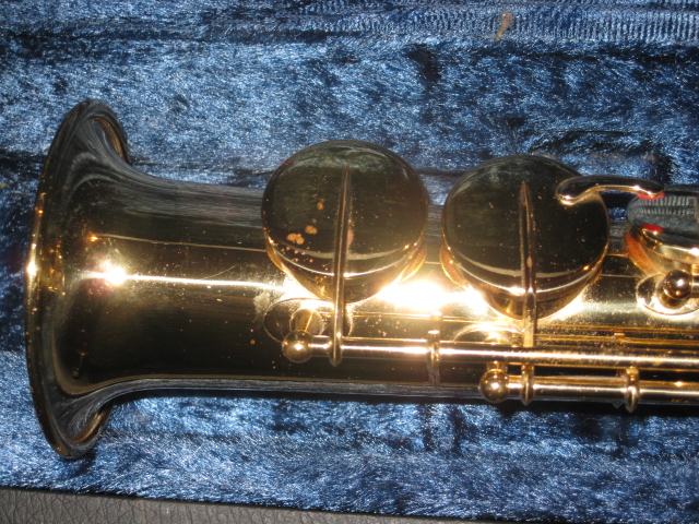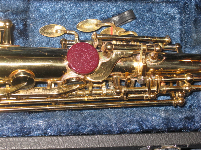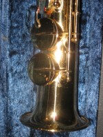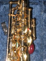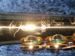 This is a good weight, has excellent modern balanced action, a high F# key. The ‘pinky’ cluster is flat under the left little finger. The thumb and octave key rests are in a dark burgundy colour, which is a bit odd at first because of the colour, but it was copying Selmer of course in the use of plastic. I guess they were designed to be more easily replaced the metal. In any case I’ve never had to have the horn either repadded or repaired, although as an occasional soprano player it only gets played on a couple of numbers on gigs. As usual I’ve added a video clip from my saxachronic chamber so you can hear what it sounds like.