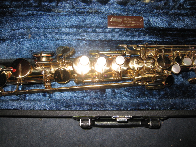 In any case I was earning reasonable money as a semi-professional musician, so I decide to splash out on a soprano. I bought this from Michael White‘s saxophone shop in Ealing. It was just round the corner from Chiswick, where I worked for 23 years (with the great yawn of commuting 100 miles a day). It was always fun to go and see the second hand instruments there and I have bought a couple over the years. Michael is also very well stocked with accessories –  a good place to buy mouthpieces (including C Melody models for instance). I strongly recommend giving him a visit.