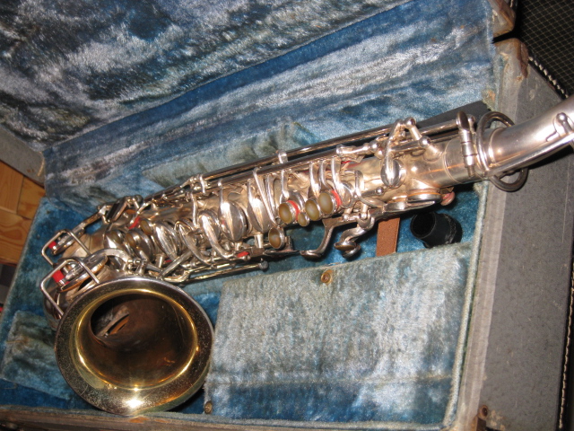 I bought this from my saxophone technician a few years age, who had already repaired, repadded and replaced the felts on it. It is a silver-plated Martin Handraft alto from 1930 and is excellent condition, made just after the stock market crash the previous year.